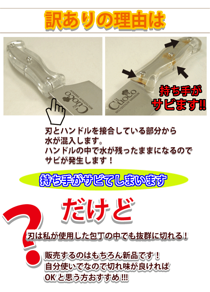 北海道・沖縄・離島は、別途送料がかかります! 注意 不正注文の場合は 「キャンセル」させて頂きます! 要注意 持ち手が、サビる包丁です!